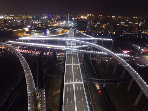 該工程是寧波市中心城區快速路網重要組成部分。一期工程新建高架主線長1.9公里,采用雙向6車道,設計時速80公里;新建、改建地面輔道長2.3 公里,采用雙向6車道,設計時速50公里。項目建設后期的景觀綠化提升工程是寧波大型市政工程最早開始高架亮化美化的工程,成為寧波的門戶(寧波東出口) 的一道亮麗風景。