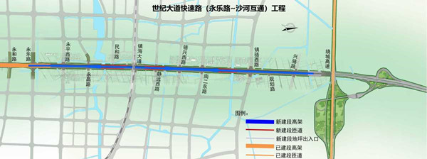 世紀大道快速路是我市中心城區快速路網體系中內聯城區路網、外達城際高速的最主要南北向軸線,按照“一次性劃、分段實施”的原則,其中東明路-永樂路段于2019年9月開工建設,2021年7月1日建成通車。