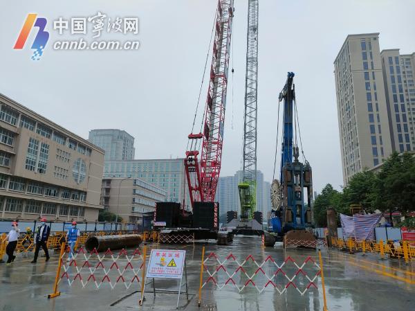 麗園北路站位于海曙聯(lián)豐路與麗園路交叉口。開工首日,記者在現(xiàn)場看到,數(shù)十輛機(jī)械設(shè)備有序作業(yè),細(xì)雨中百余工人正開展地連墻施工,意味著車站全面施工正式開始。