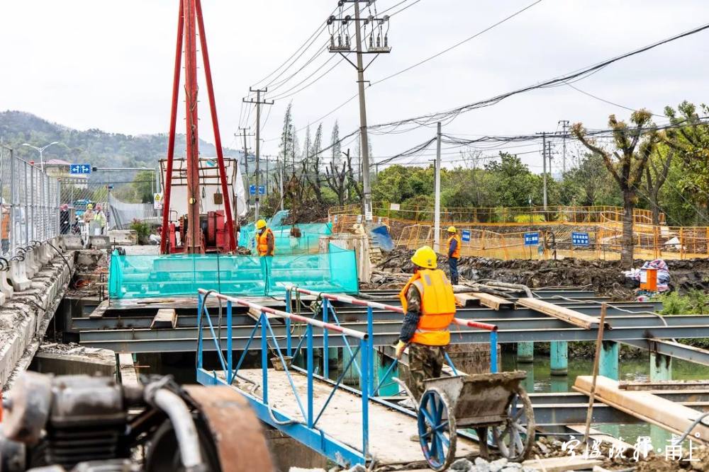 日前,鄞縣大道東吳段改造施工如火如荼,三個(gè)橋梁加固提升同時(shí)開(kāi)展樁基作業(yè)。