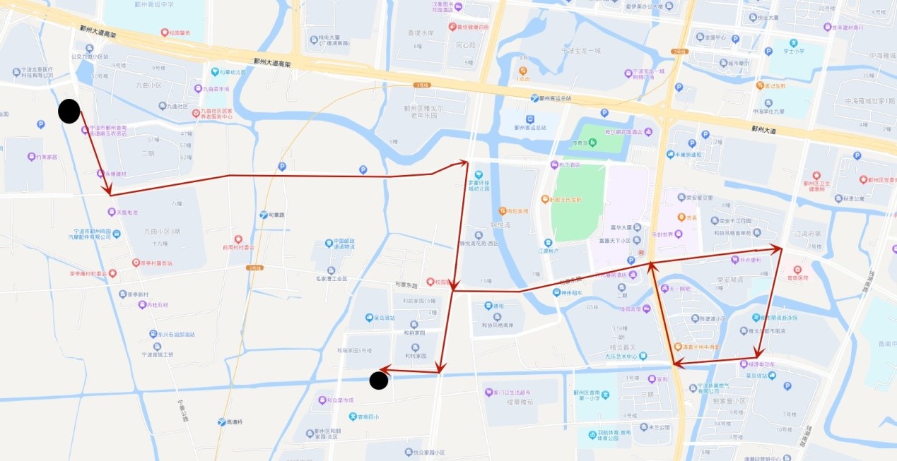 站點設置:天網家園、花語湖郡南門、逸嘉新園西北門、洪都花園、三和嘉園、寧波大學附屬學校南門、江北中心學校