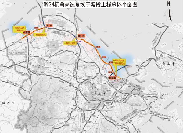據介紹,杭甬高速復線寧波段一期分為東西兩段: