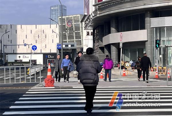 1月31日下午2點40分,隨著綠燈亮起,連接天一廣場一號門和碶閘街的人行道開通,市民在天一和義商圈南北側便捷往來。