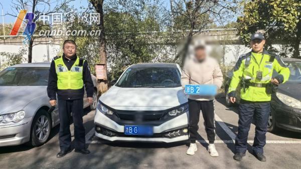 事情發生在4月22日。當天下午3點50分許,在江北區河東路上,交警開展例行巡邏時,發現一輛停靠在路邊的車輛前后號牌不一致。