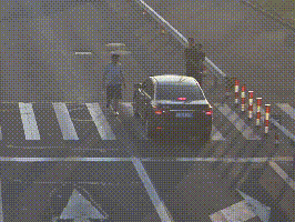 根據事發路口公共視頻顯示,一輛黑色轎車突然停在路口的右轉車道前,被堵在后方的車輛無論如何鳴笛,這輛黑色轎車就是一動不動。