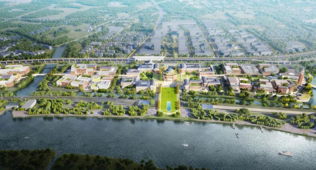 從以下效果圖可以看出,隧道上方,是寧波東方理工大學(暫名)不受道路阻隔、直接延伸到甬江邊的大草坪。