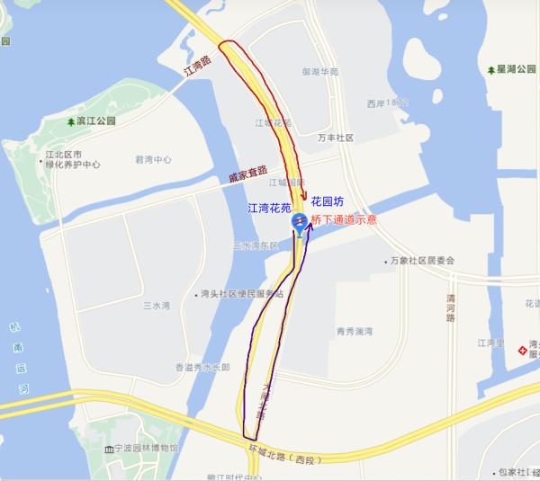 據介紹,在地下通道未開通前,家住江灣花苑小區的居民要到對面的花園坊去,出小區門向左轉得繞行灣頭大橋橋下道路(戚家耷路路口地處交通要道,機動車行車速度較快,常年處于封閉狀態);如果出門后右轉,得繞行至環城北路后,才能抵達花園坊。步行大約需要15分鐘-20分鐘。