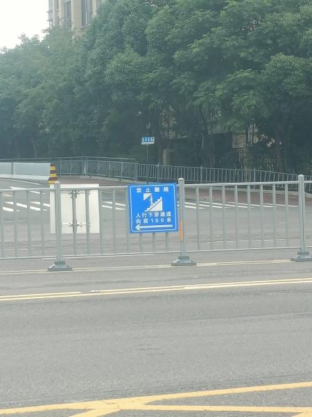 住建部門在戚家耷路路口設置了地下通道指引牌。