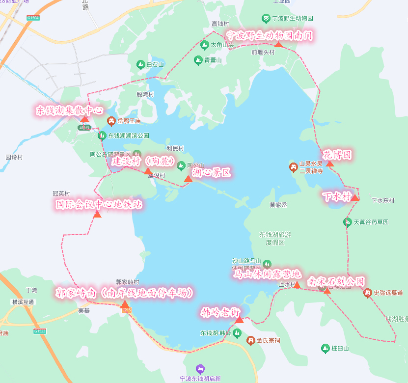 該線路及站點(diǎn)設(shè)置為:湖心景區(qū)→建設(shè)村(陶麓)→東錢(qián)湖集散中心→寧波野生動(dòng)物園南門(mén)→花博園→下水村→南宋石刻公園→馬山休閑露營(yíng)地→韓嶺老街→郭家峙南(南岸線地面停車(chē)場(chǎng))→國(guó)際會(huì)議中心地鐵站→建設(shè)村(陶麓)→湖心景區(qū)。