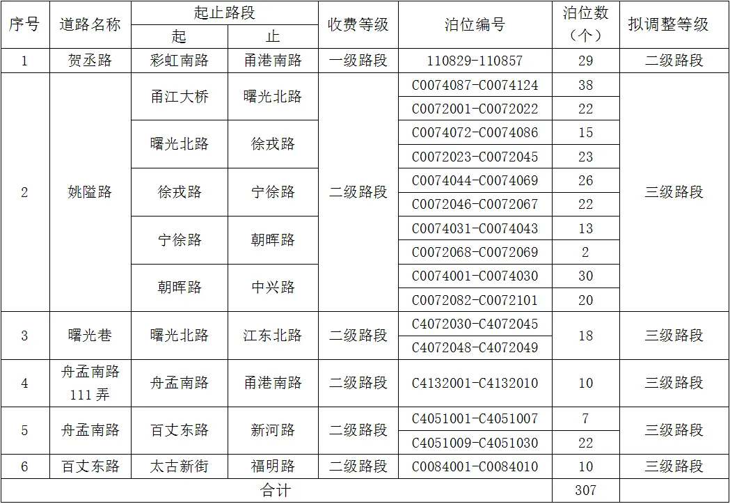 于2025年9月1日8時開始對鄞州區(qū)賀丞路(彩虹南路-甬港南路)、姚隘路(曙光北路-中興路)、曙光巷(曙光北路-江東北路)、舟孟南路111弄(舟孟南路-甬港南路)、舟孟南路(百丈東路-新河路)、百丈東路(太古新街-福明路)六條道路開展道路泊位的動態(tài)調(diào)整試點工作。