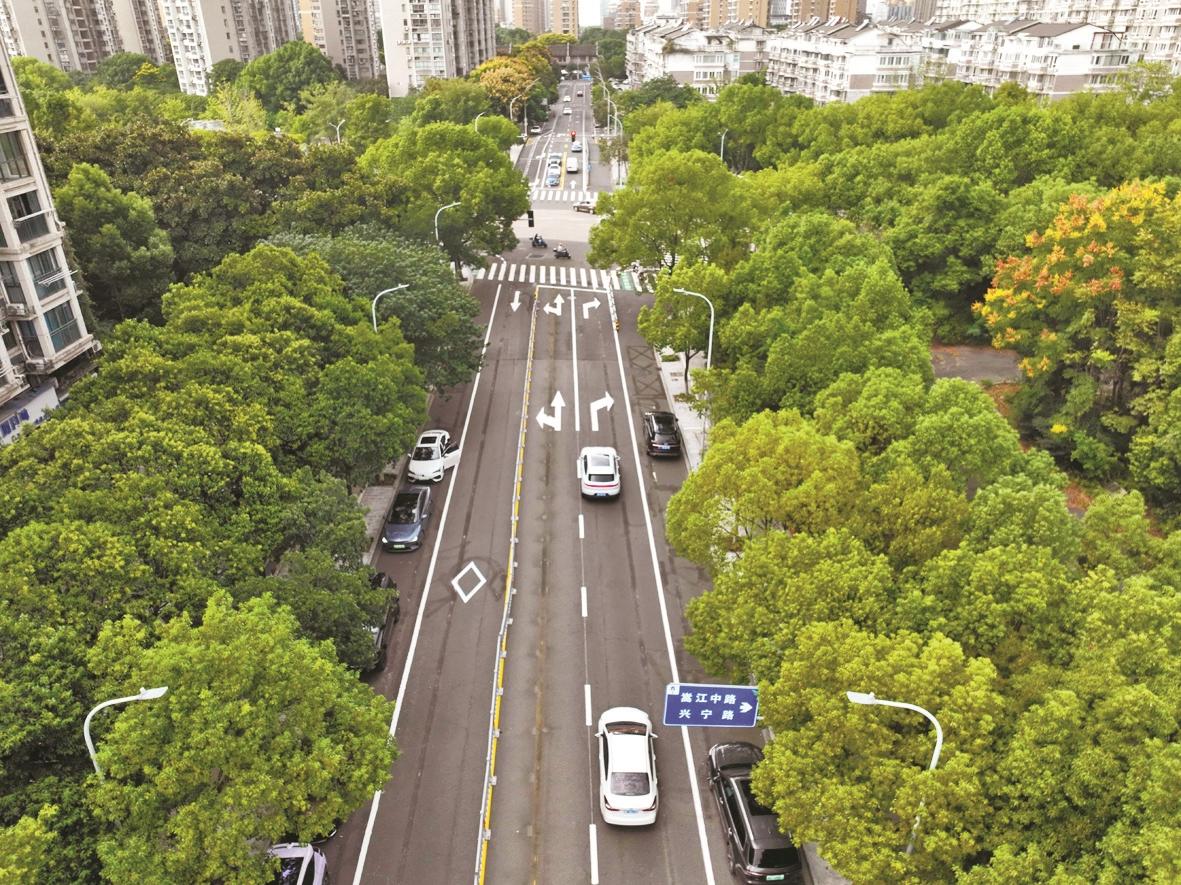 堇山中路優(yōu)化后的通行情況。鄞州交警供圖