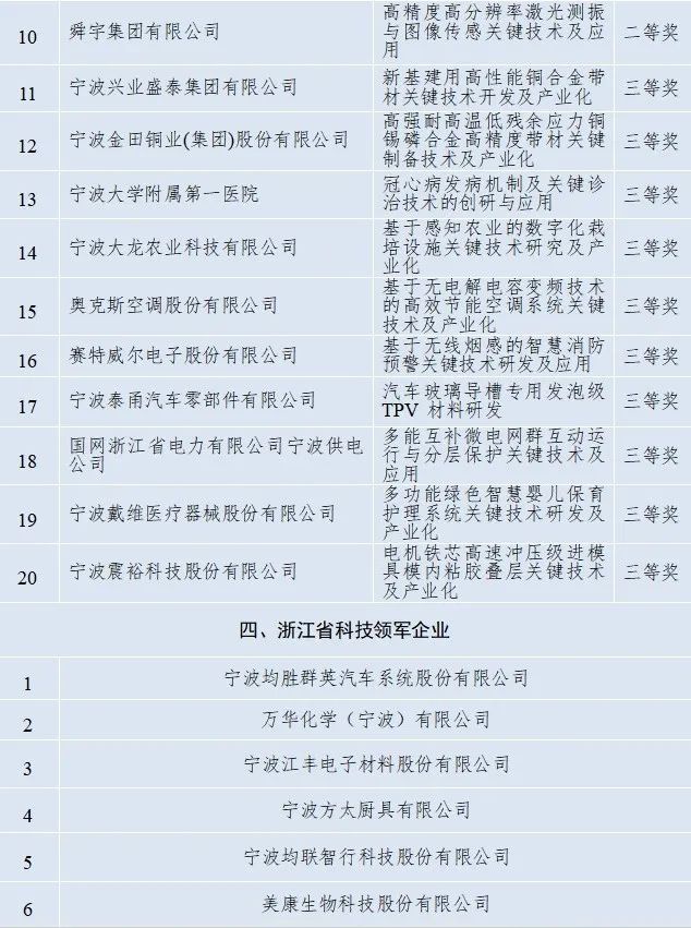 2023年度獲得國家、省科技進(jìn)步獎(jiǎng)單位與科技領(lǐng)軍企業(yè)名單