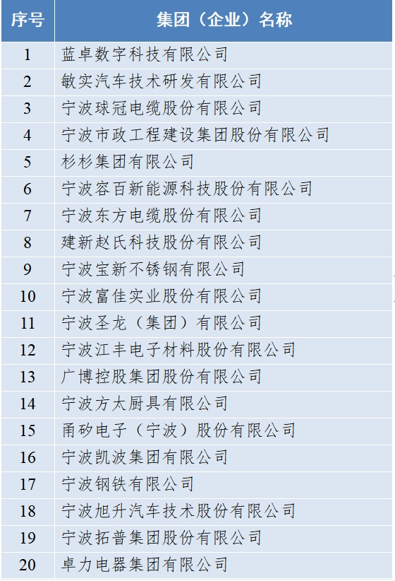2023年度寧波市工業(yè)企業(yè)畝均效益領(lǐng)跑者20強(qiáng)名單