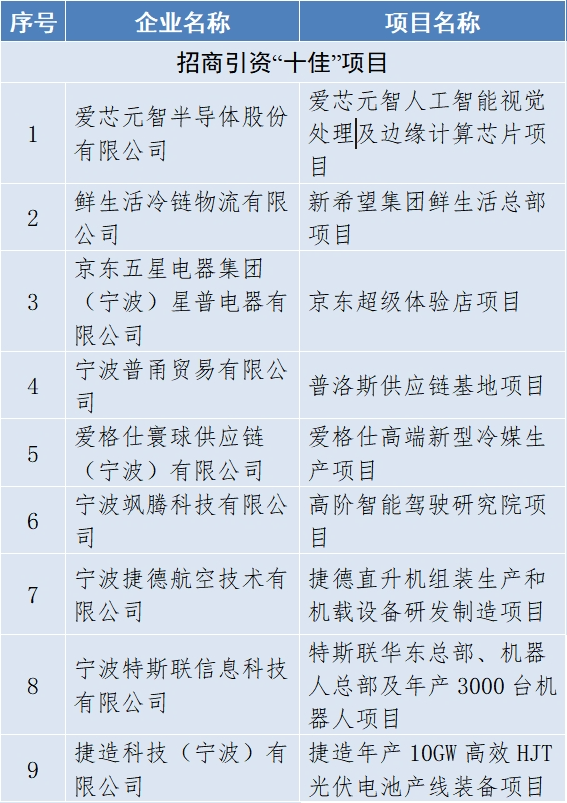 2023年度寧波市招商引資與制造業(yè)投資雙“十佳”項(xiàng)目名單