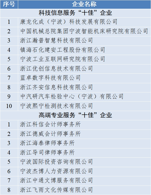 2023年度寧波市現(xiàn)代服務(wù)業(yè)3個(gè)“十佳”企業(yè)名單